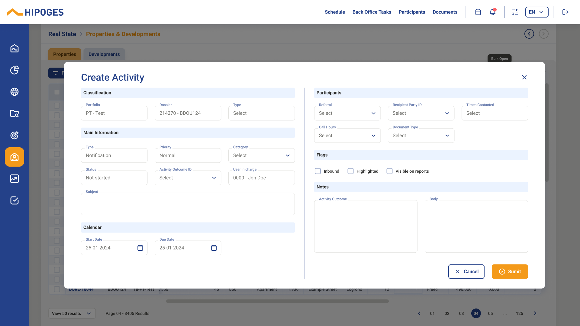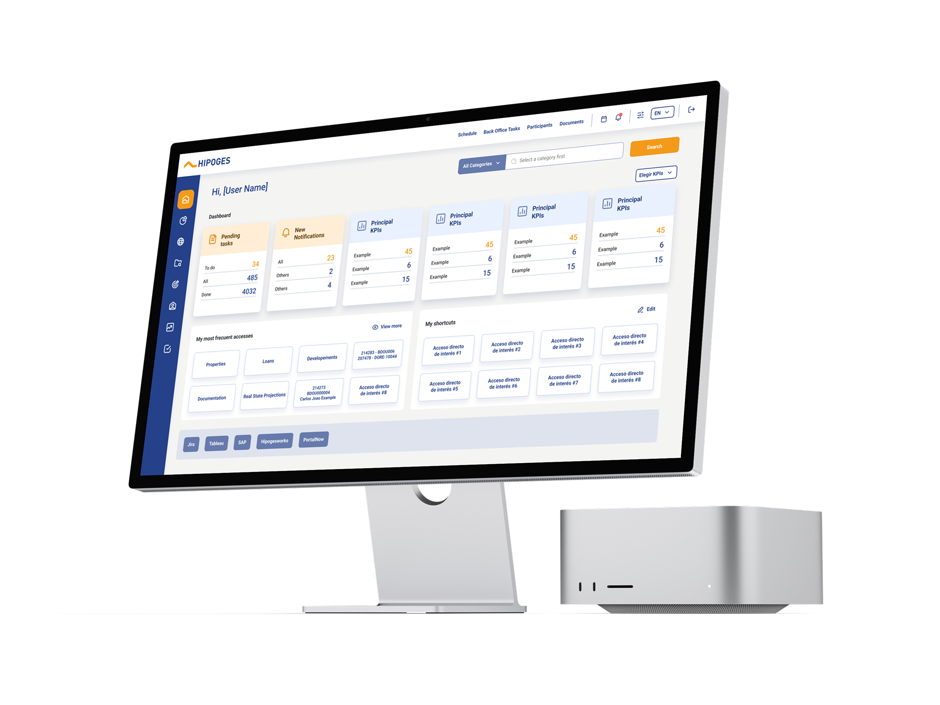 Redesign of Hipoges’ internal multi-department SaaS platform used daily by legal, operations, asset management, valuations, and portfolio teams.